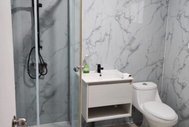 1 baño , cocina americana- linving - comedor.